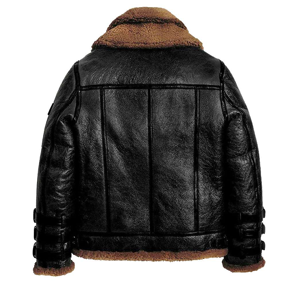 Men Aviator RAF B3 Shearling Bomber Black Leather Pilot Jacket