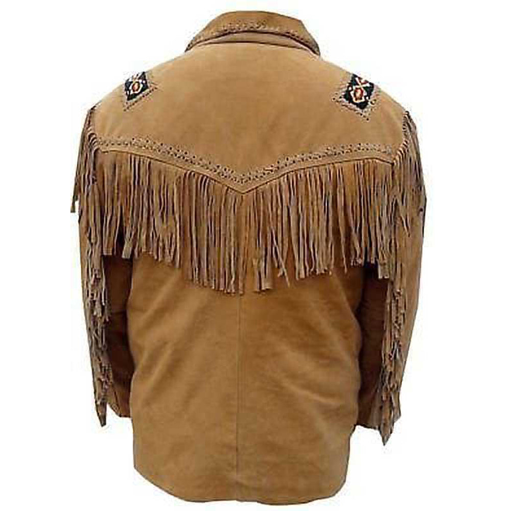 Men Tan Brown Western Cowboy Fringe Leather Jacket