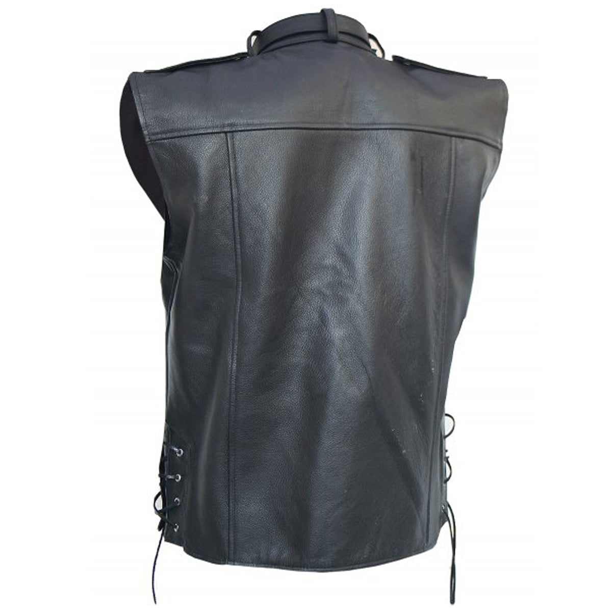 This vintage black leather motorcycle vest is one of the best vest from jacket hunt best motorcycle leather vest collection. Natural Cow hide leather vest offers maximum durability and flexibility. Natural leather is resistant to normal wear and tear and designed to last lifetime. Our Black Leather Motorcycle Vest for sale has two inside concealed and carry pockets with bullet snaps and tapered holster. This leather vest fashion mens has inside cell phone pocket that is very secure. . This genuine cowhide zipper leather vest comes with fixed comfortable non allergic polyester liner. Original YKK metal zippers,