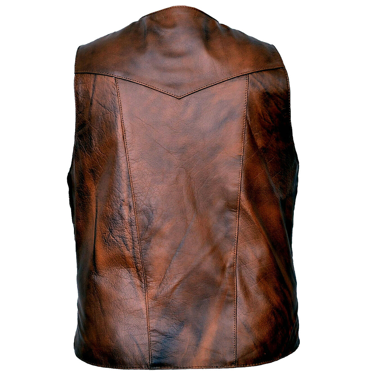 Men Wax Brown Cowhide Fashion Leather Vest
